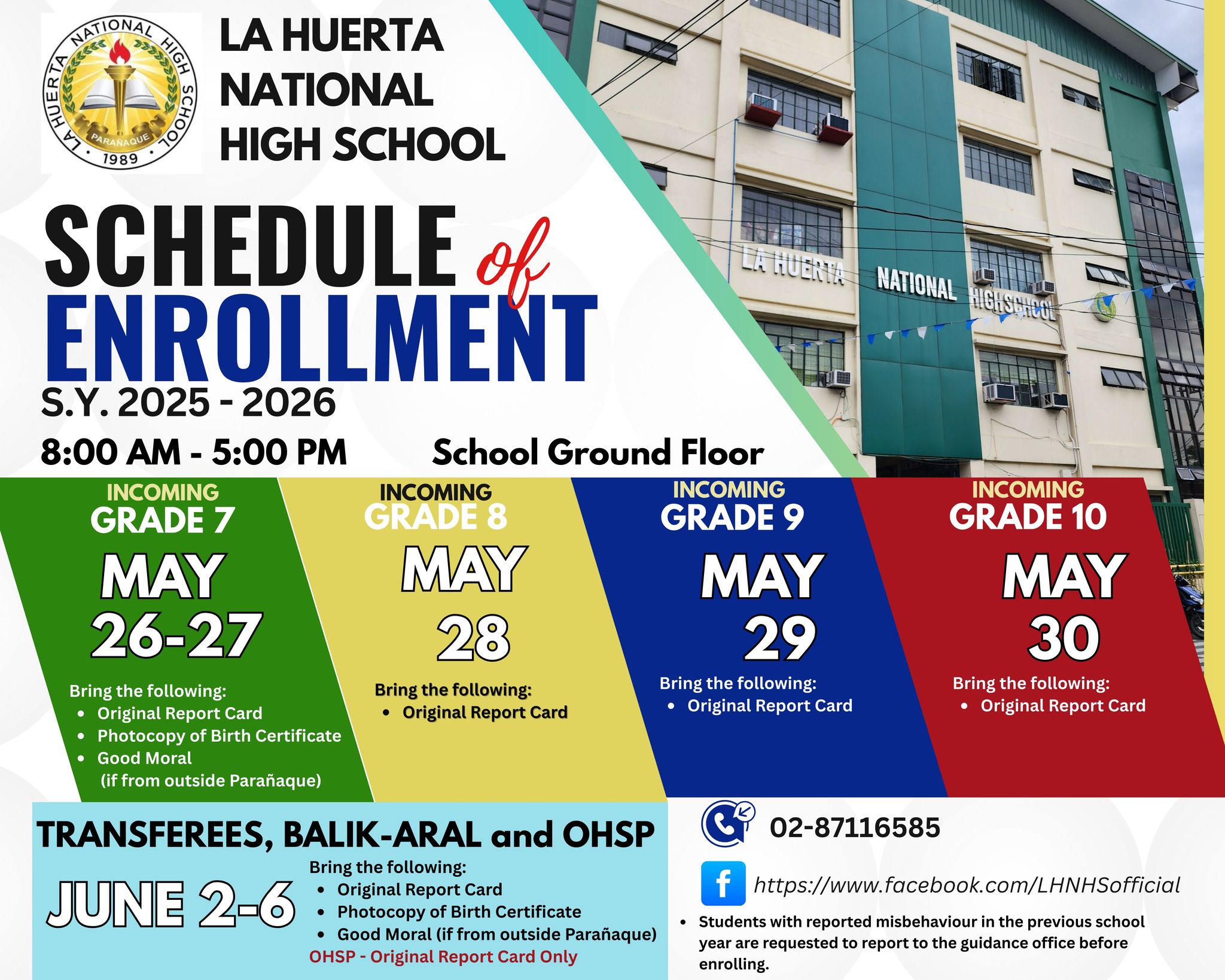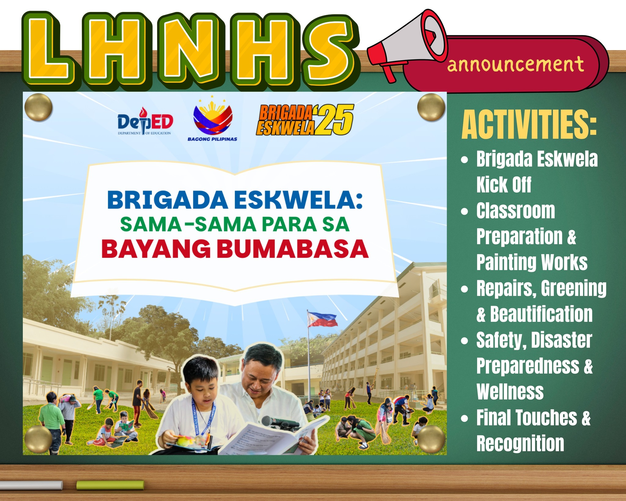 We’re inviting all parents, students, and partners of La Huerta National High School to join us for Brigada Eskwela 2025!